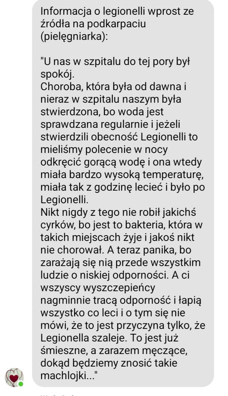 Temat legionelli, niby od pielegniarki z rzeszowskiego szpitala.